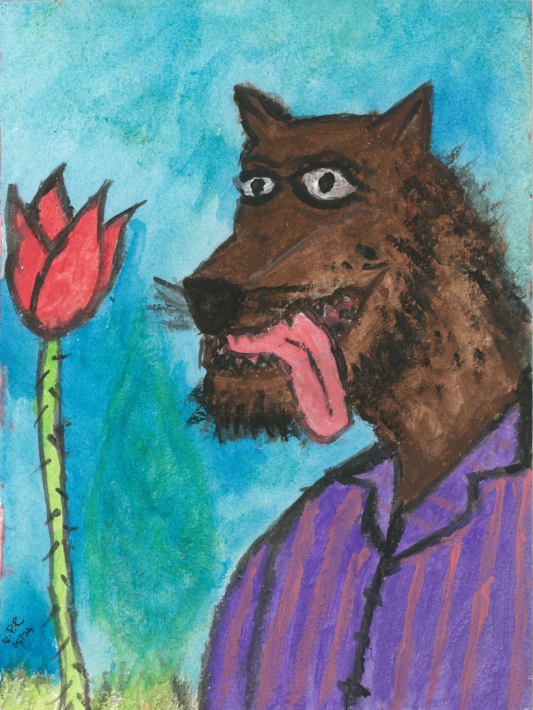 Title: A crocodile emerges from a flower